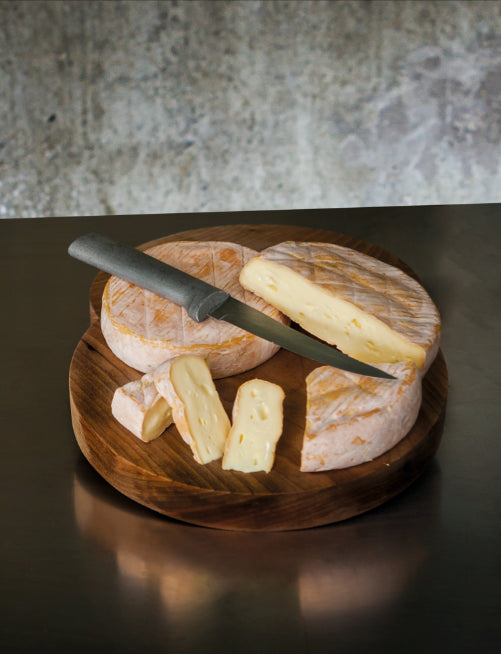 This succulent and buttery washed-rind cheese has aromas of peat, roasted beef, and onions – a strong and complex front for the subtle milky, herbal, ripe-peach flavors within. Willoughby has a thin, tender, rosy-orange rind, which adds earthy dimension to the texture and flavors of the gooey interior.