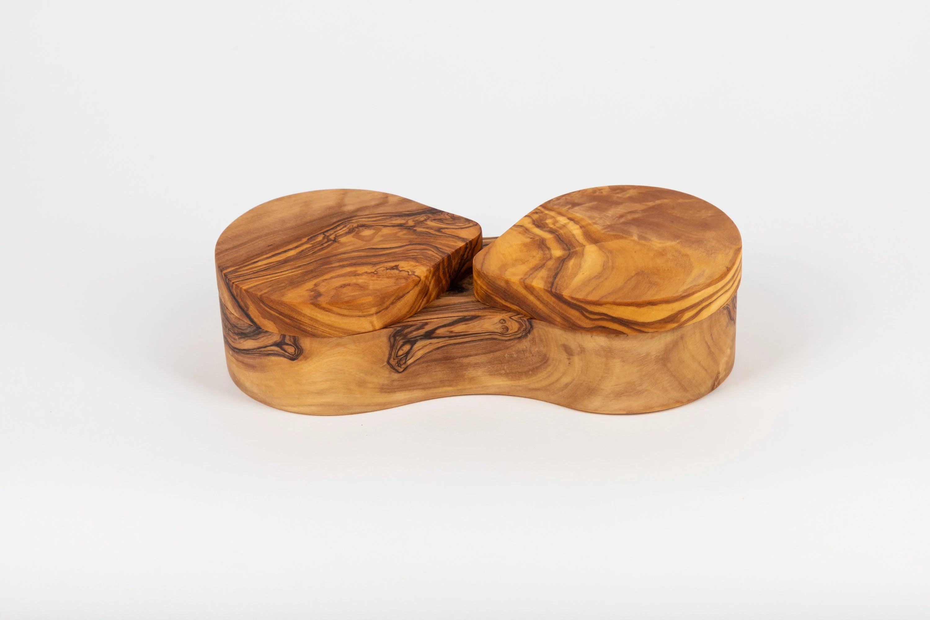 This beautiful olivewood box keeps up to 225 g. of salt within close reach, making it a useful addition to the kitchen bench or dining table. Handcrafted of richly grained olive wood with an oil finish, it has a swiveling magnetic lid for easy one-handed access.
