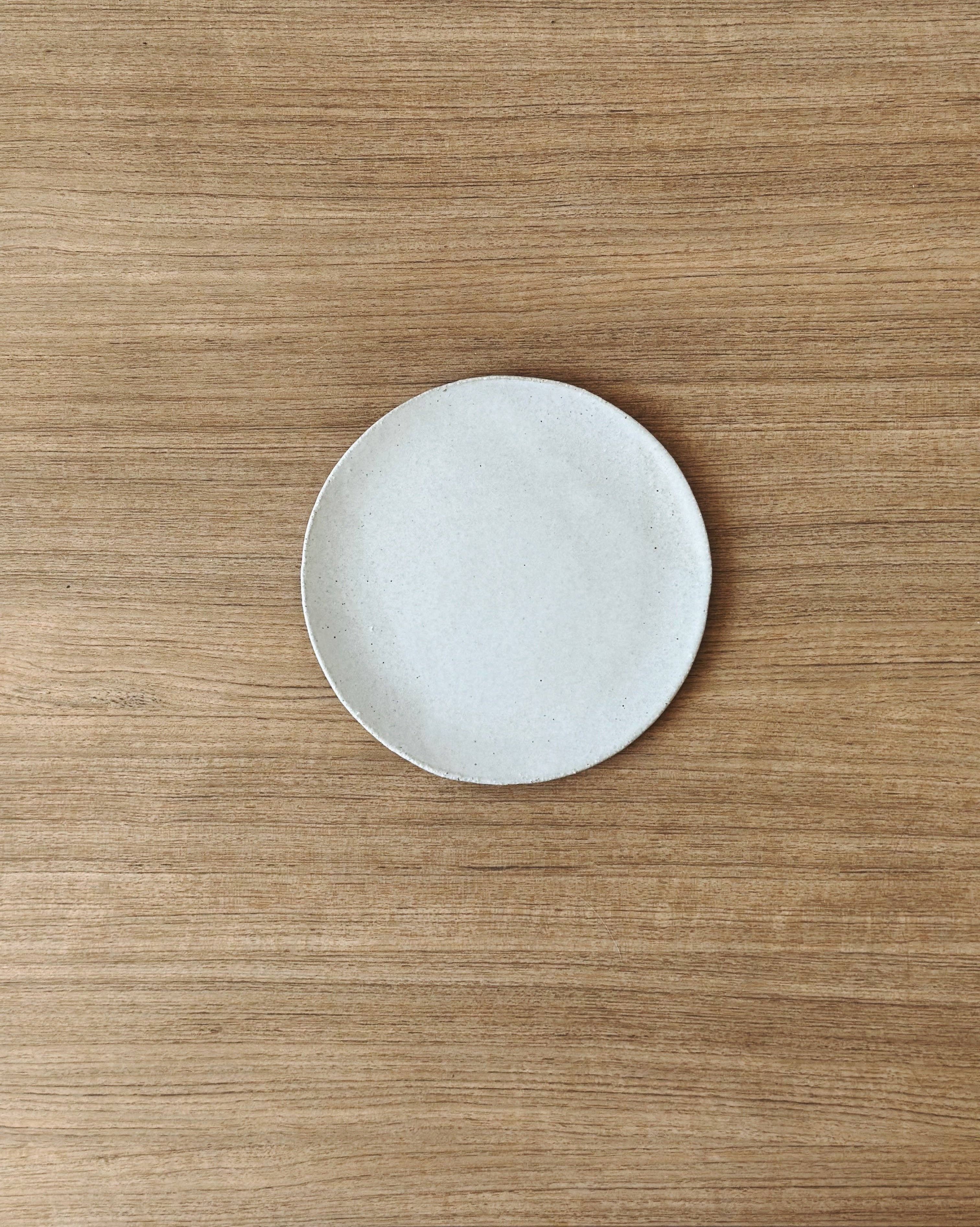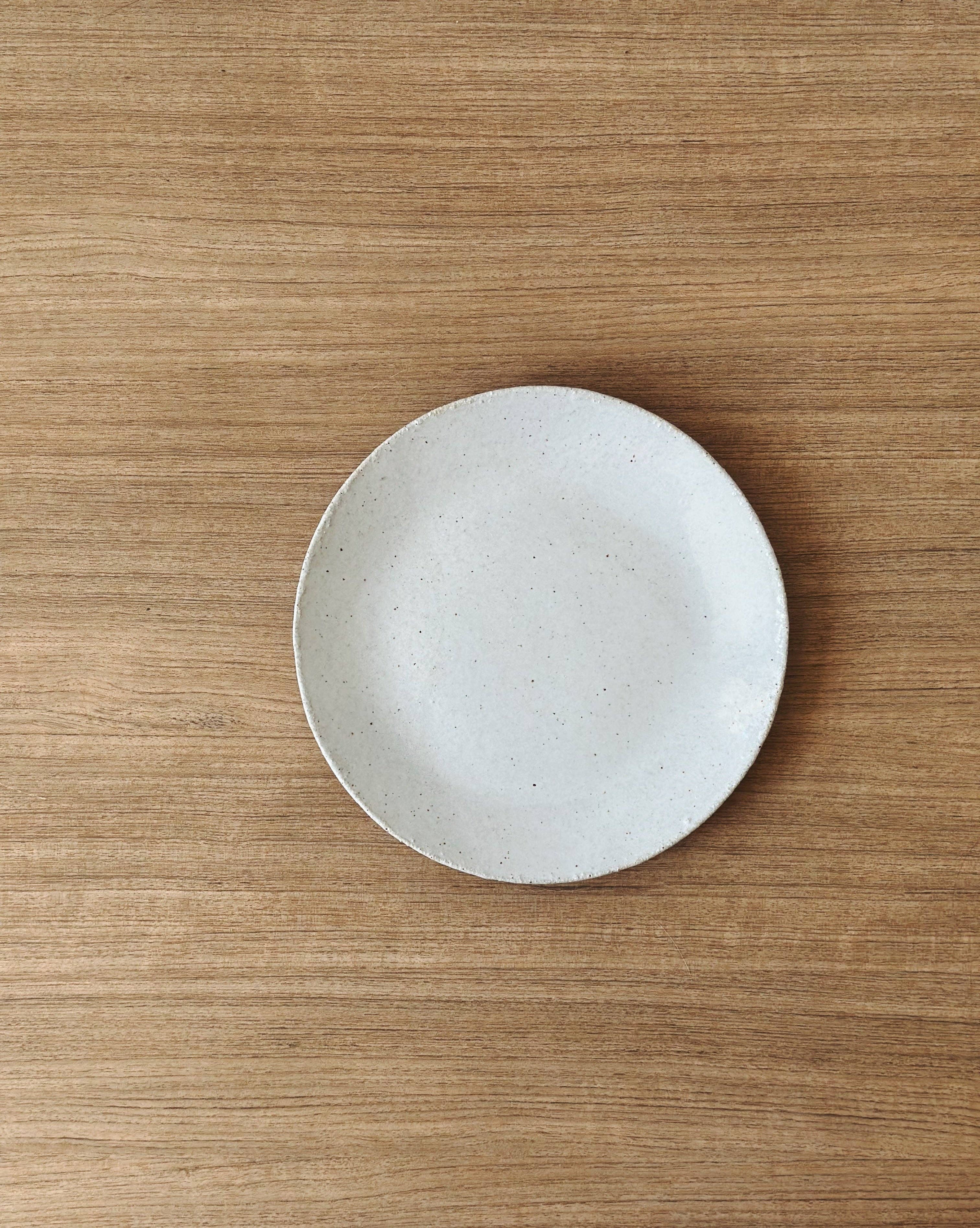These handmade pottery plates from Jenn Johnston are the perfect combination of slightly textured white clay and lush white glaze. Available in three sizes, there is sure to just what you are looking for, from a snacking side plate to the perfect dinner plate.