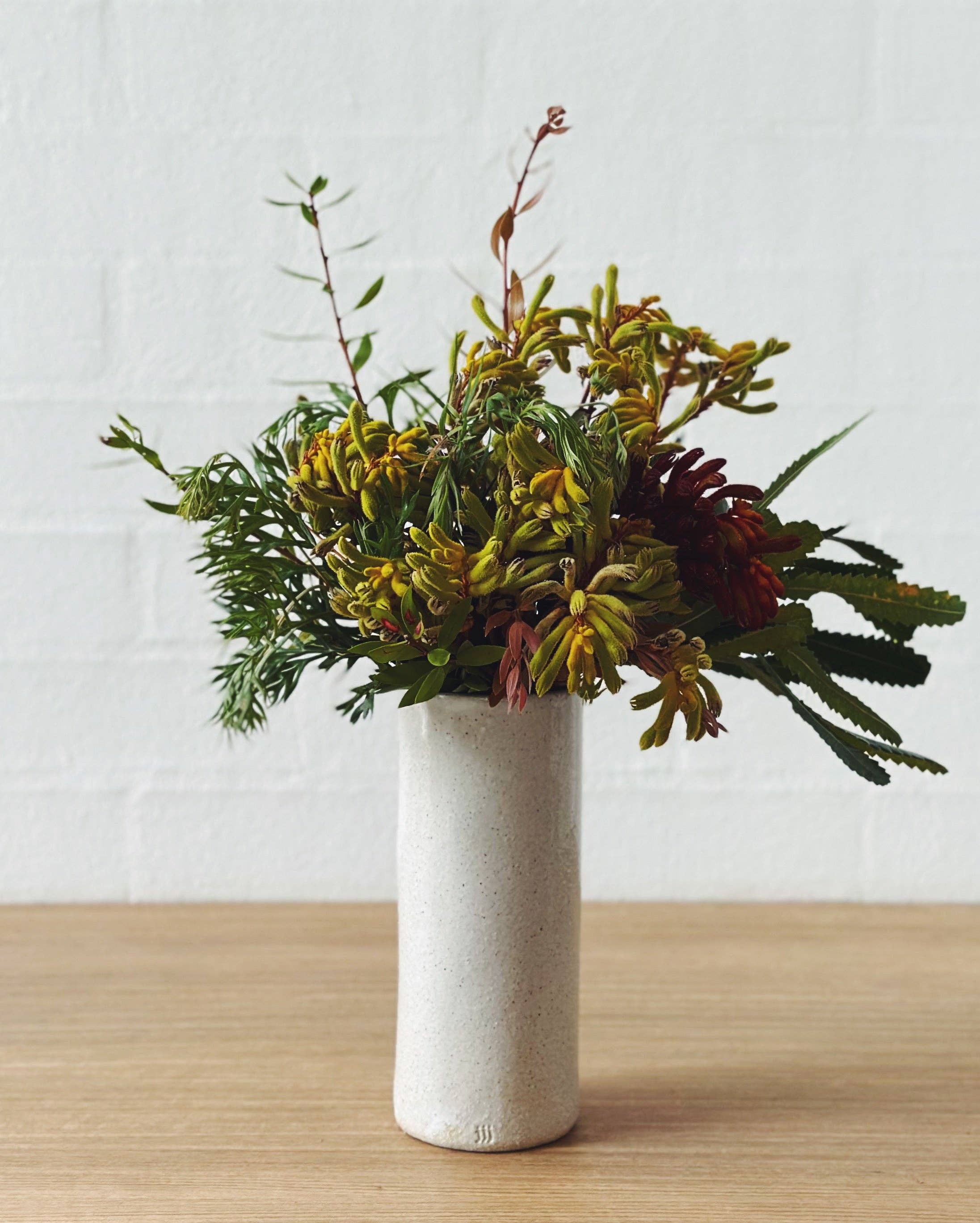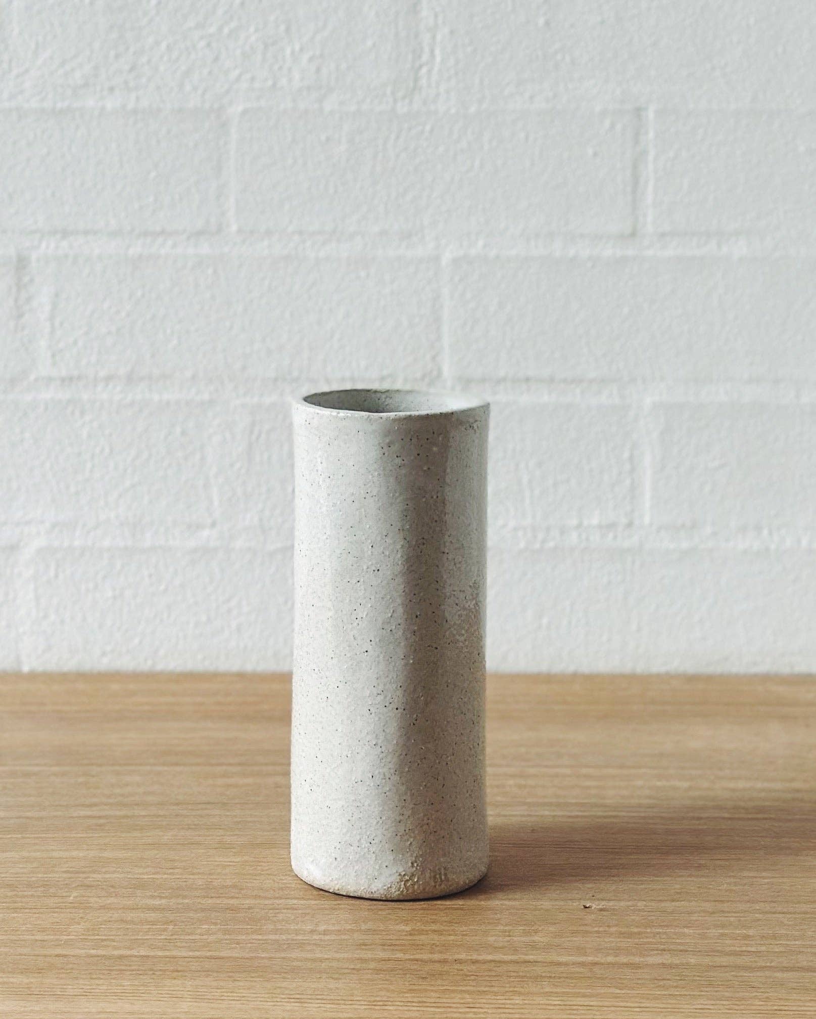 The clean, straight lines of this vase, complement the elegant white glaze and ever-so-slightly-textured clay, making it the perfect vessel for displaying cuttings from the garden or flowers from a friend.