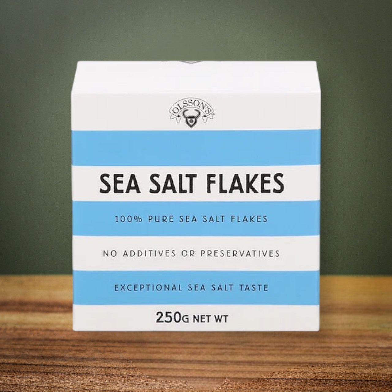 Olsson's Sea Salt Flakes are soft, sweet and delicate. This product is made from the pristine sea waters of the Great Australian Bight, is completely natural, chemical and preservative free and retains an exceptional sea salt taste.