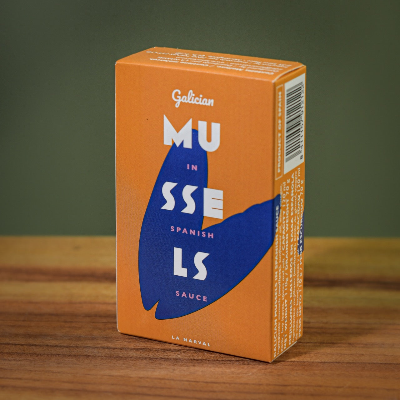 La Narval Mussels in Spanish Sauce from the Galician coast prepared in one of the most genuine sauce in Spain: Escabeche, which is made with paprika, vinegar, oil, garlic and bay leaves. The frying process takes place with a meticulous temperature control in order for the mussel not to break due to its water content.